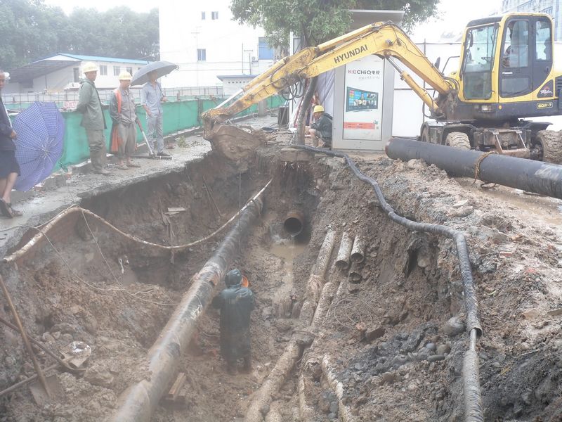 克服困難冒雨施工 眾志成城搶修爆管